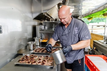Truck parkuje v naší restauraci Grill Pub v Olomouci, ale během pár hodin může stát u vás na zahradě, nebo v areálu vaší firmy a naši kuchaři vám připraví cokoliv si budete přát. Máte tak zaručenou čerstvost a kvalitu podávaných pokrmů. Navíc vaši hosté mohou sledovat grilovaní steaků, přípravu různých specialit světové gastronomie nebo tvorbu našich vyhlášených hamburgerů na vlastní oči a s odborným komentářem šéfkuchaře Zdeňka Svobody.